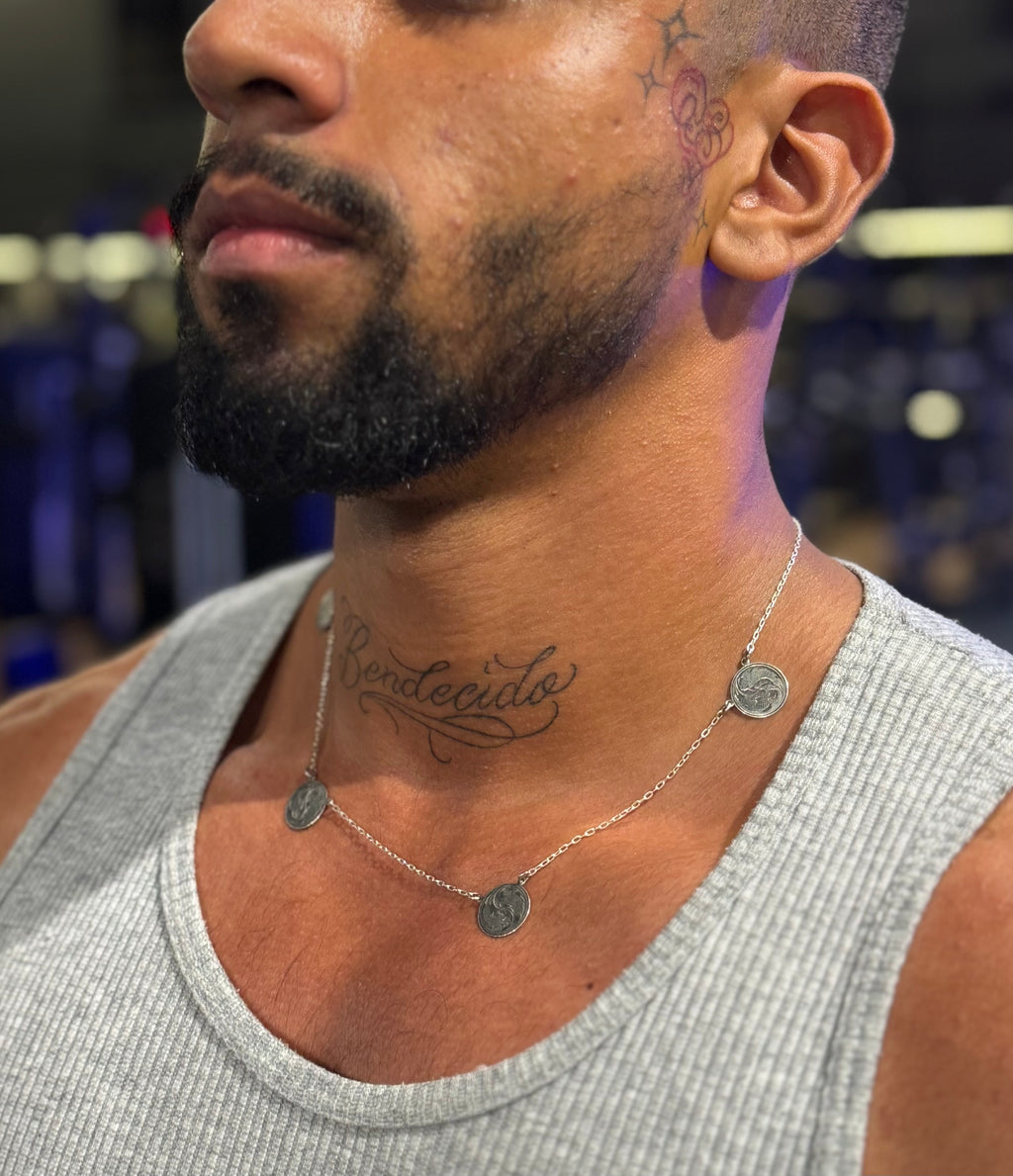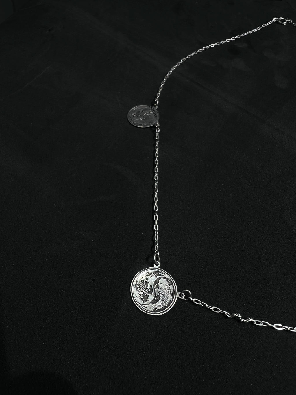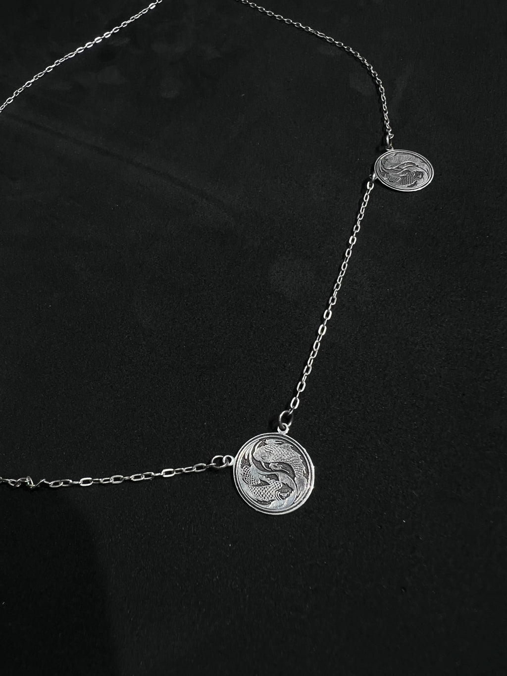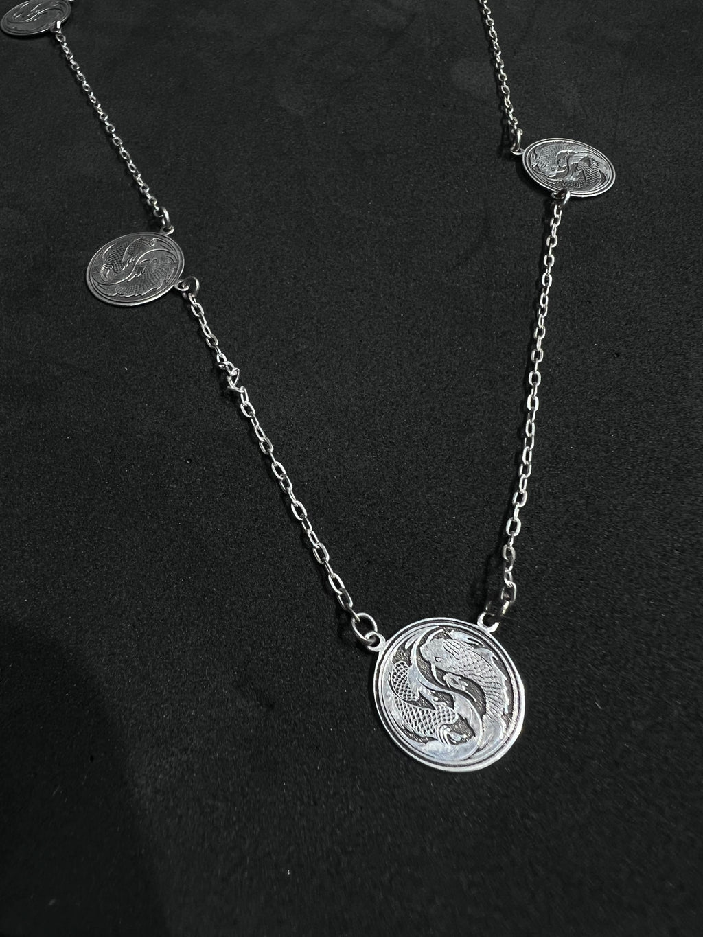 (Processo de Fabricação- modelo fabricado manualmente - prazo de 5 dias úteis após a realização do pedido para ser enviado) Colar em prata 925 modelo cadeado com 50cm medalhas com simbolo das carpas gravadas